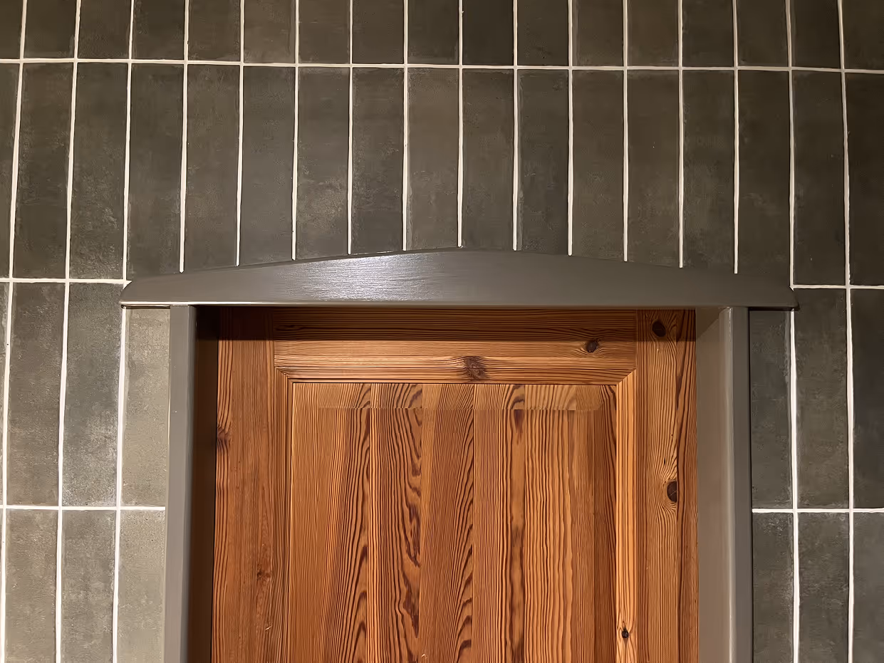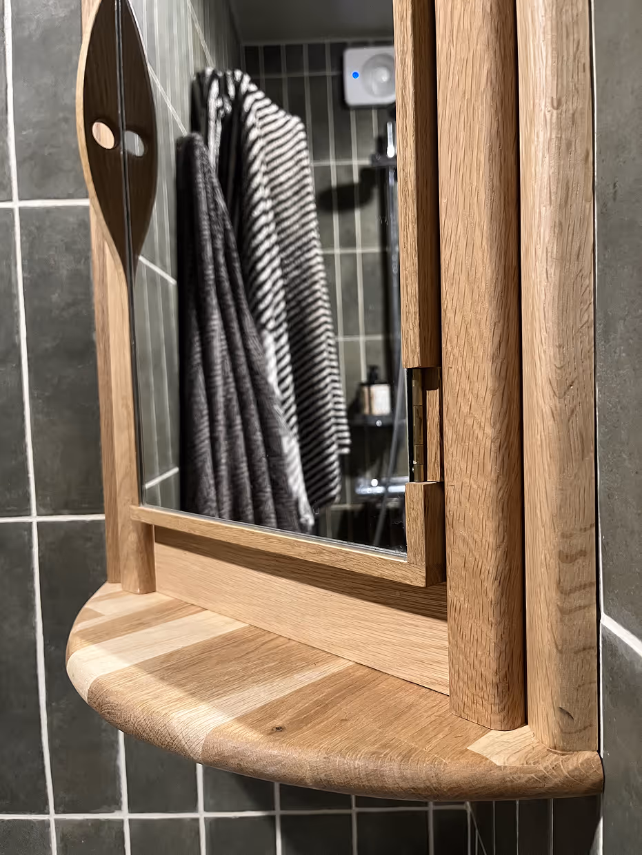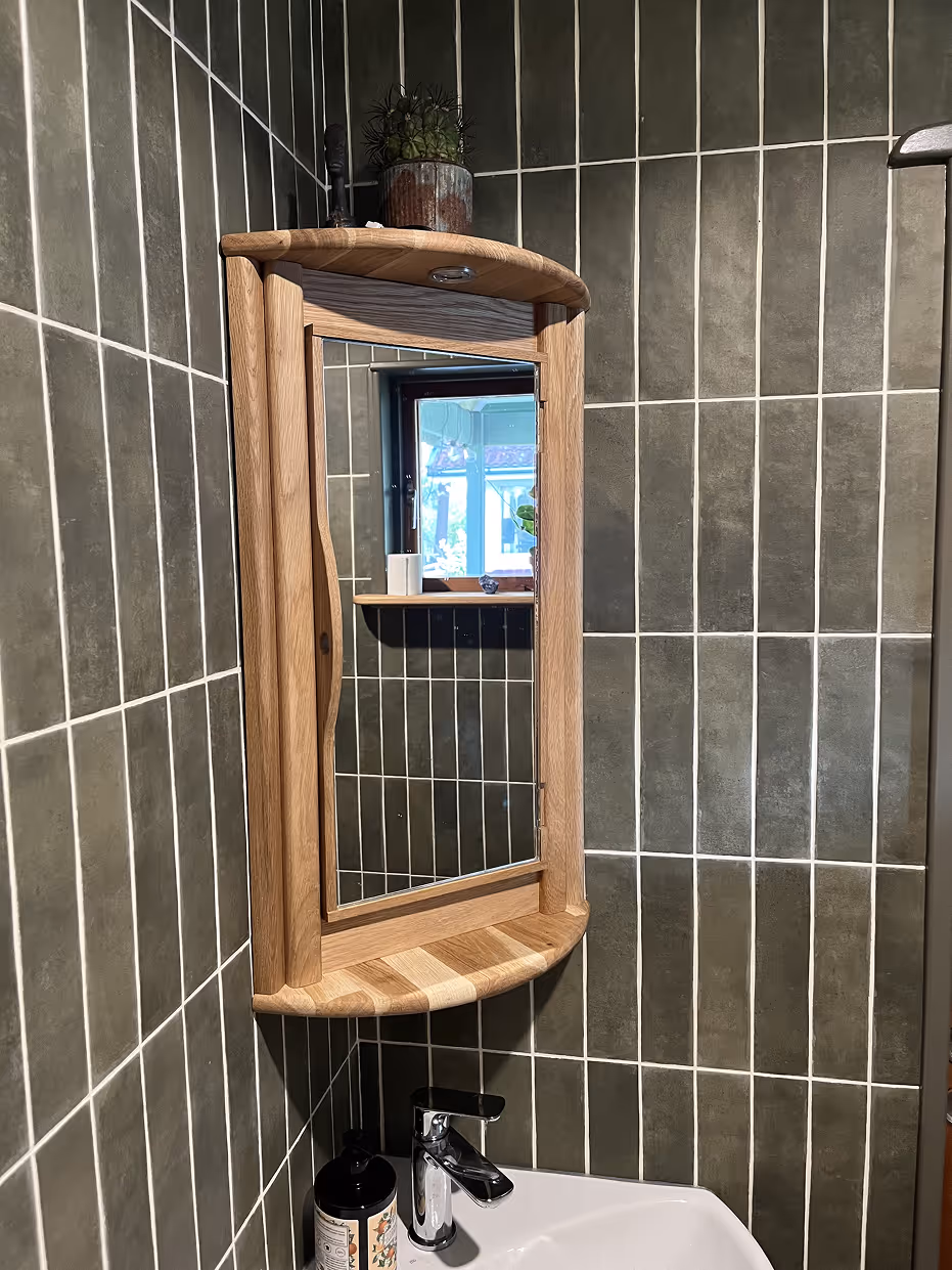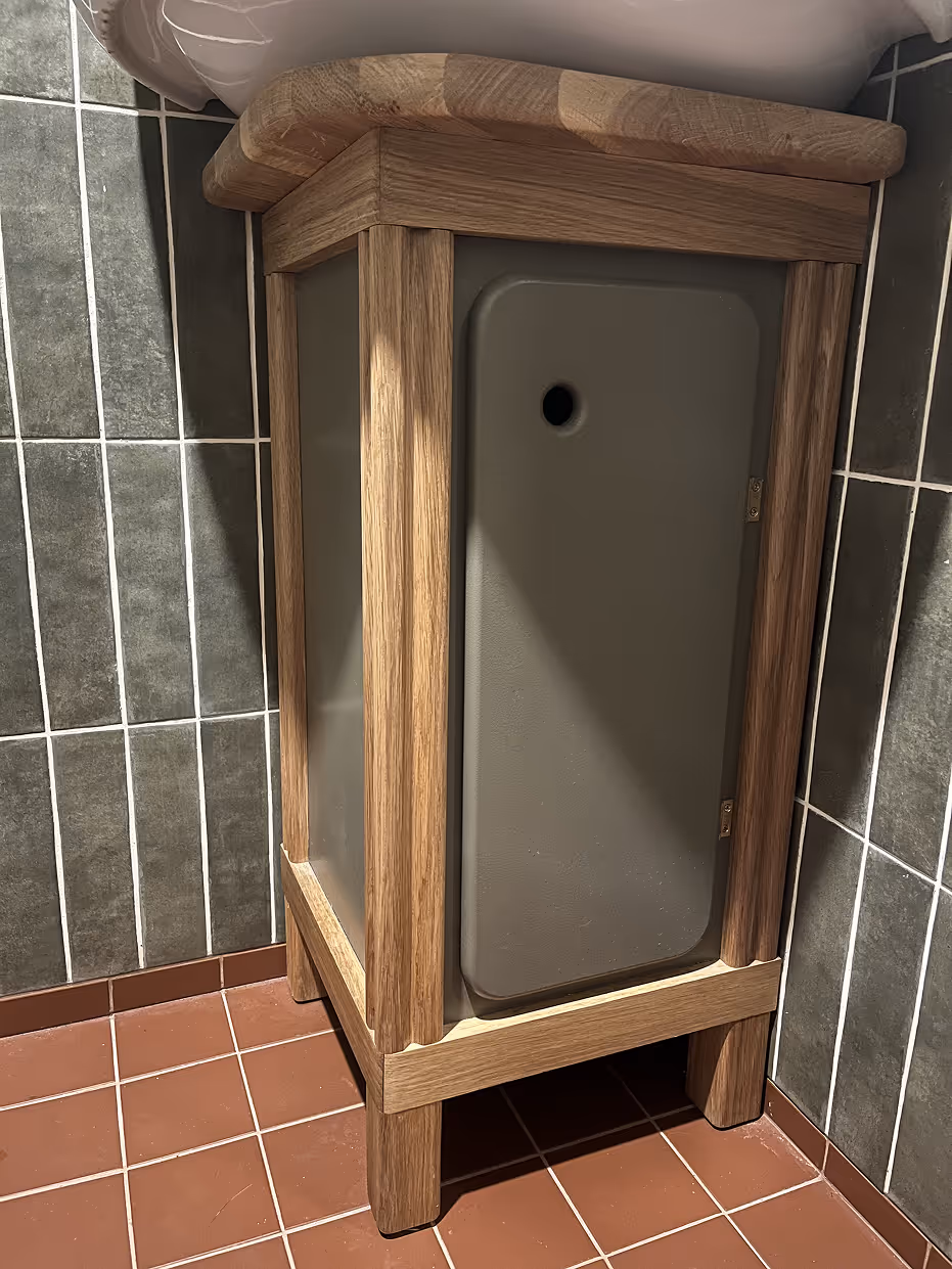 Badrumsinredning i ek och grönt